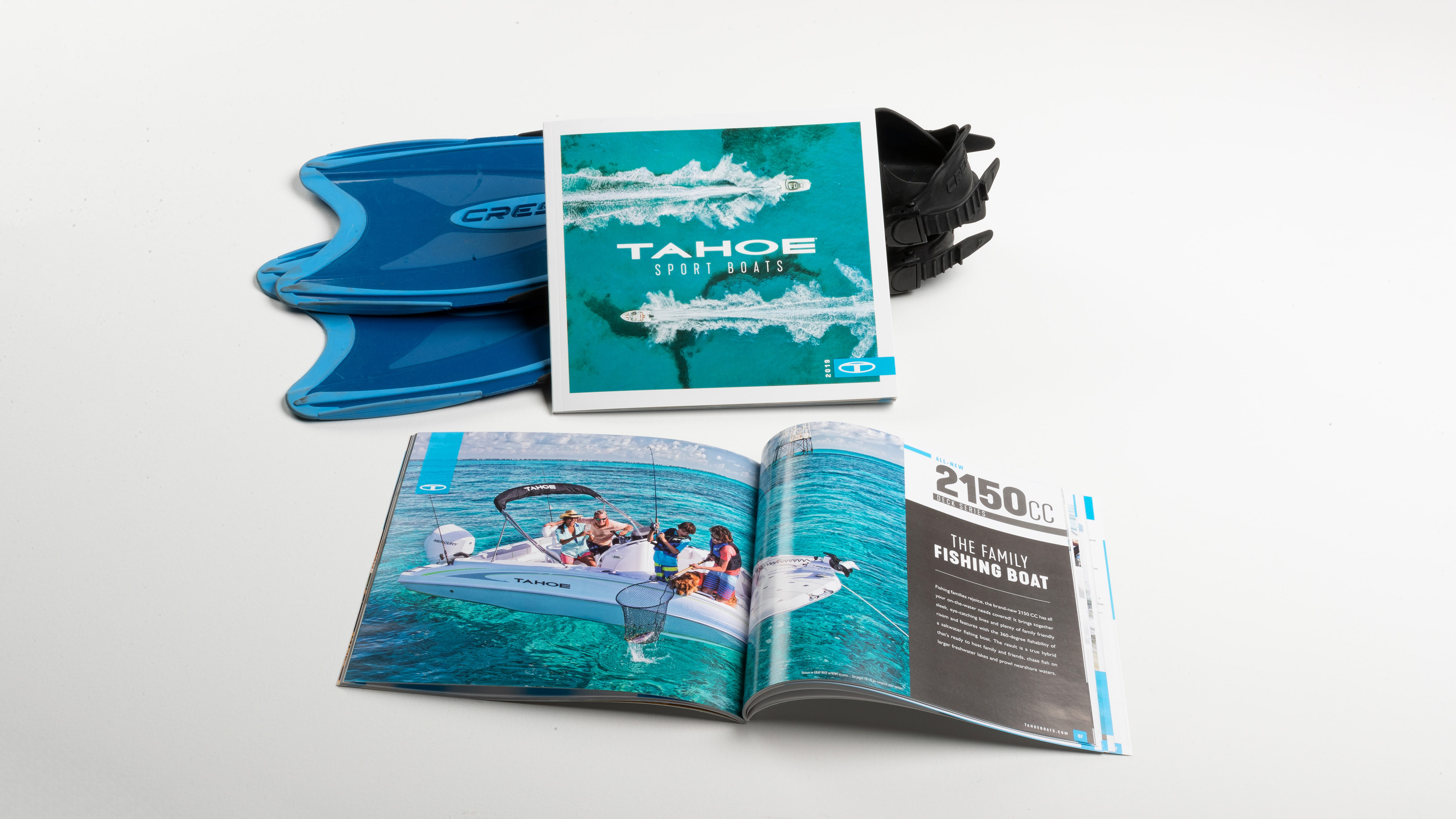 This is the 2019 model year brochure for TAHOE Sport Boats — a brand under the Bass Pro Shops umbrella. This catalog is used by sales associates worldwide to assist customers in their boat-buying process. TAHOE is a sport boat brand with a family-friendly, versatile approach. I art directed and worked on the design of this book as well as planned, organized and art directed the photo/video shoots that took place for each boat in the lineup in order to get all the content needed not only for this catalog but also for all marketing materials.